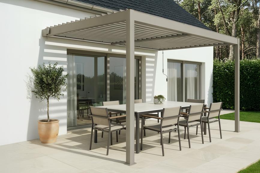 PIANA 4x3m attached bioclimatic pergola in taupe aluminum * Priority booking